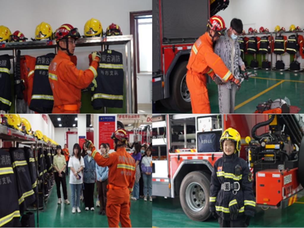 习近平总书记指出加强安全生产工作、坚决防范重特大安全事故的要求。高校安全消防工作,要从牢固树立“四个意识”和坚决做到“两个维护”的政治高度,充分认识消防安全工作的极端重要性,深刻认识重大事故所带来的严重后果和恶劣影响。要始终保持清醒头脑,坚决克服侥幸心理,时刻紧绷消防安全这根弦。5月18日,学院团总支书记姜鑫老师和学生工作与就业办公室主任包双成老师带领全院在校学生的宿舍长和学生干部、团员青年来到呼和浩特市赛罕区山丹街消防救援站实地参观、学习。