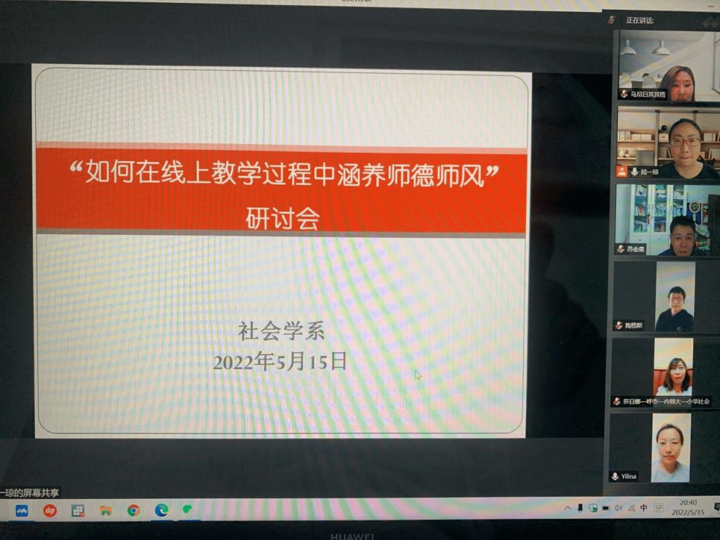按照校党委和学院党委的部署和要求,2022515日,社会学系举行“如何在线上教学过程中涵养师德师风”研讨会,全系老师参加并做发言,会议由陆一琼主持。