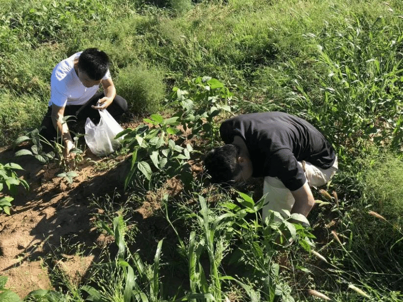 在住户家田地里协助摘毛豆
