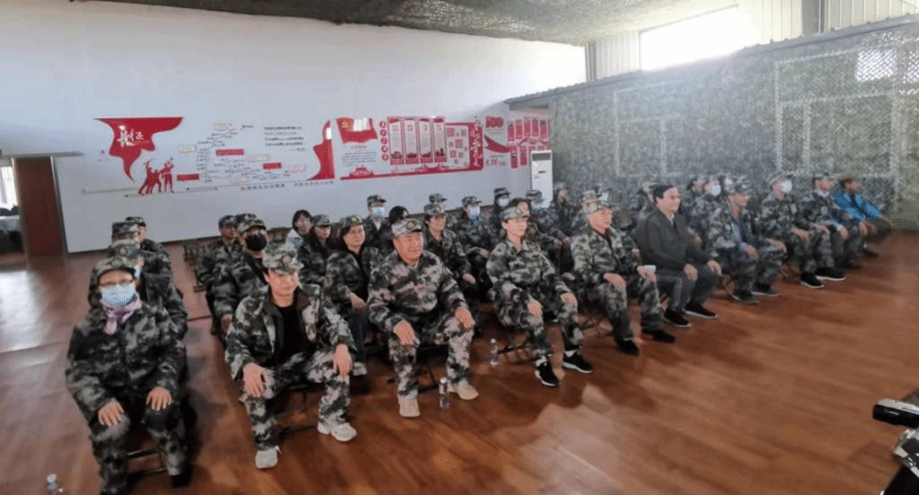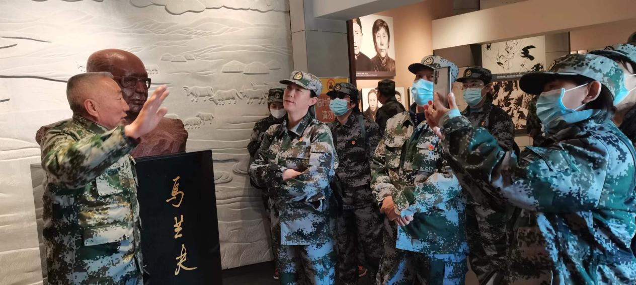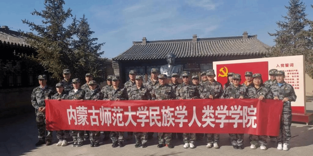 早上七点三十,大家从赛罕校区文史楼前统一乘坐大巴车前往土默特左旗塔布赛乡。在塔布赛乡国防教育基地工作人员退役女兵白雪教官的带领下,我们经过一个多小时的车程到达目的地。大家先前往塔布赛乡国防教育基地统一换上崭新的迷彩军装,经过简短队列操练后,列队整齐地前往乌兰夫故居。