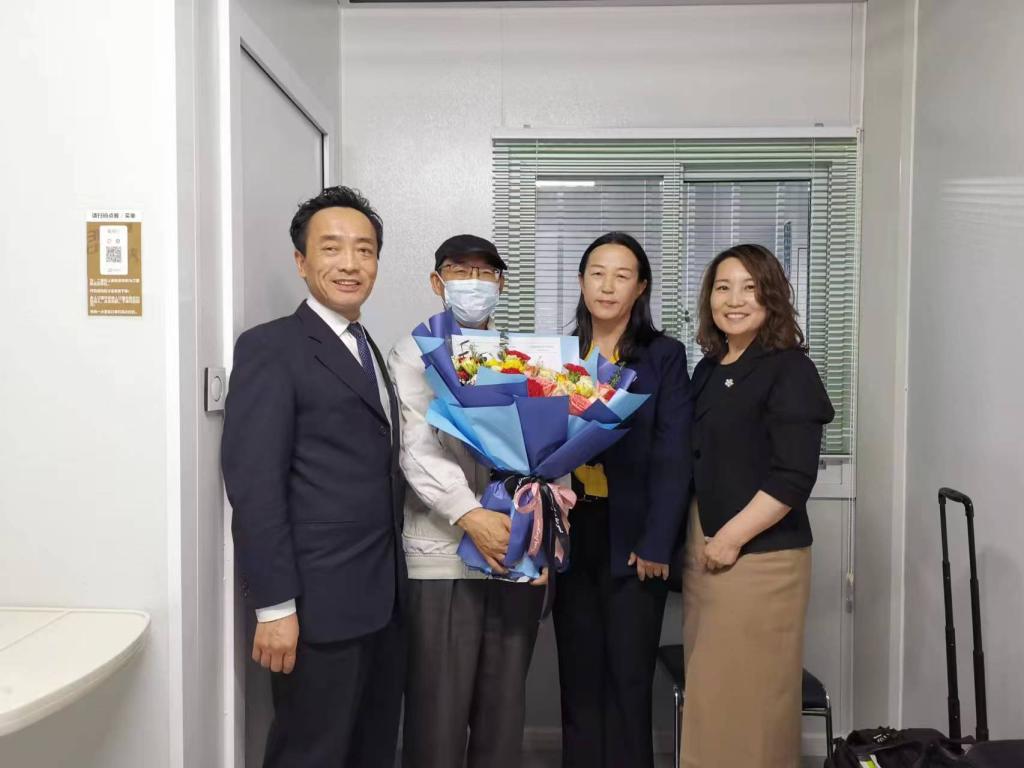 5月10日,yl9193永利集团党委书记包凤兰、副院长满达带领学院工会负责人常散丹老师慰问在病房抗疫并带病坚持工作的纳日碧力戈教授。