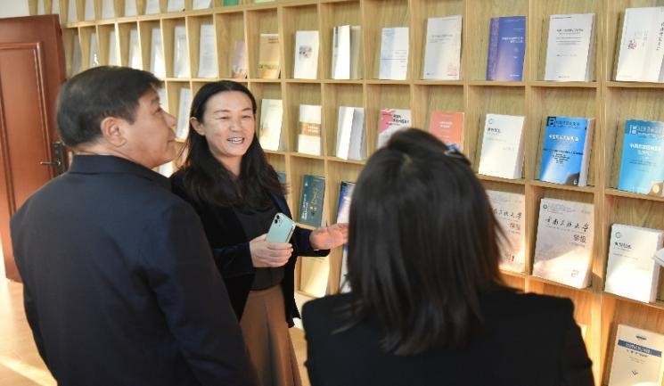 最后各位来宾、学院领导和老师们一同移步至田楼前进行合影留念。合影后,来宾们参观了我院位于田楼六楼的办公区和国家民委中华民族共同体研究基地。