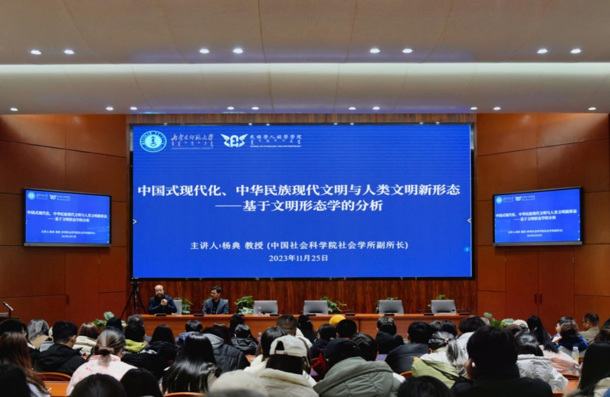 为进一步提升学科建设水平,提高人才培养质量,加强国内学术交流与合作,11月25日,我院隆重邀请中国社会科学院社会学所副所长、博士生导师、《社会学研究》副主编杨典教授在赛罕校区信息楼报告厅举行以“中国式现代化、中华民族现代文明与人类文明新形态——基于文明形态学的分析”为题的学术讲座。永利官网科技处副处长刘伟、yl9193永利集团党委书记包凤兰、党委副书记副院长陆一琼,以及我院老师和同学们约200余人参加讲座。讲座由常宝教授主持。
