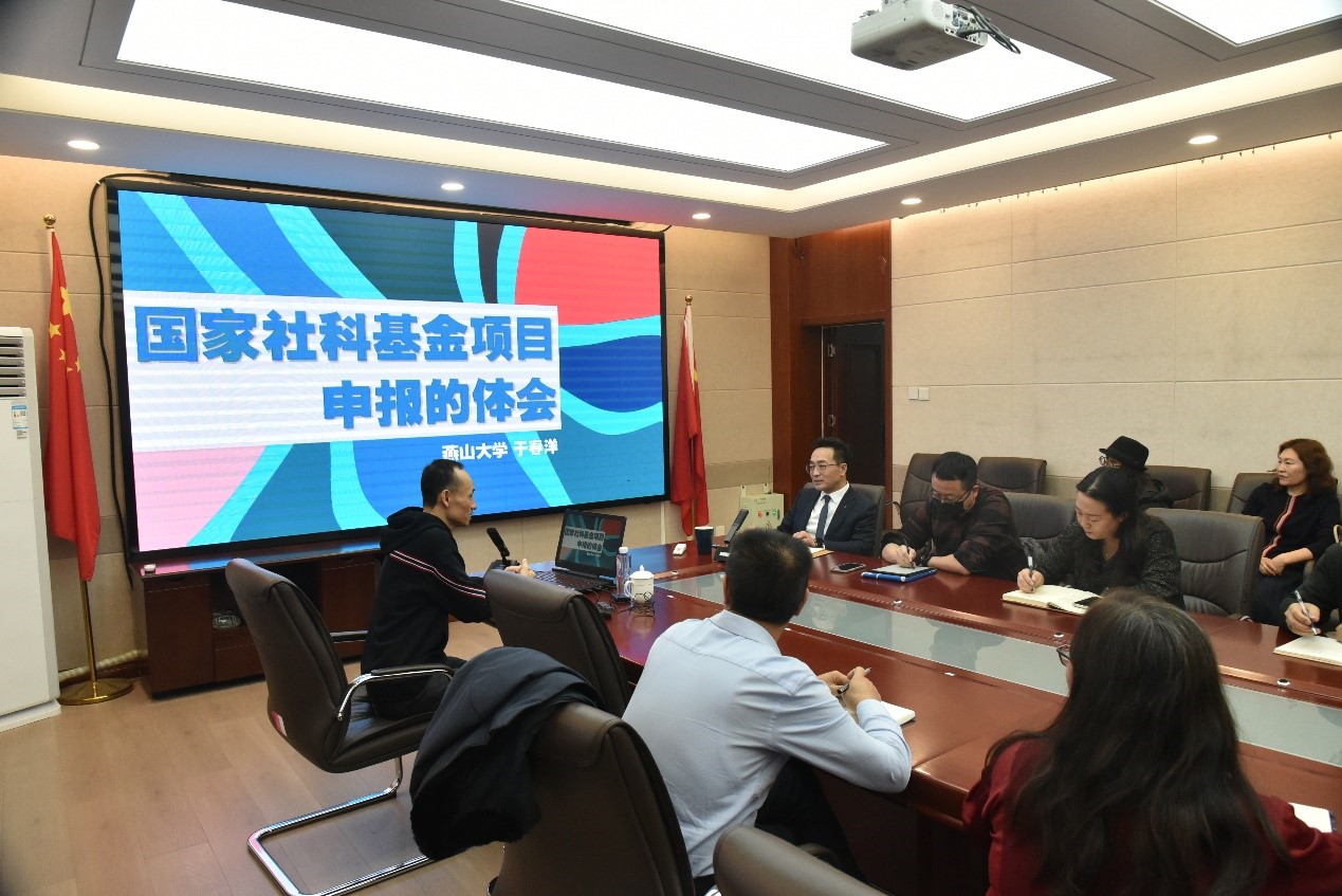 为推进我院2024年国家社会科学基金申报工作的顺利开展,切实提升项目申报质量和综合竞争力,12月14日上午,我院召开2024年度国家社科基金项目申报动员培训会。燕山大学文法学院于春洋教授应邀做辅导报告。我院党委书记包凤兰及专任教师20余人参加会议,会议由满达副院长主持。