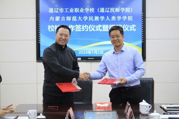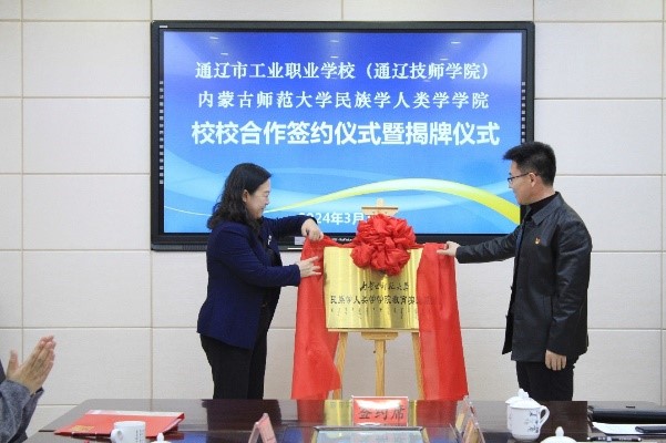 3月1日,我院党委书记包凤兰、副院长韦兰海、社会工作系主任胡那苏图与教务办公室李永硖等人前往通辽市工业职业学校,挂牌签约了教育实践基地。