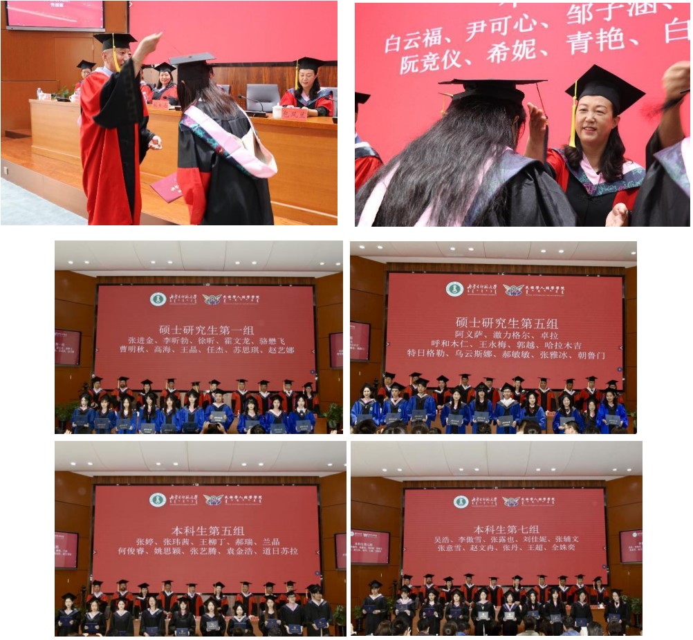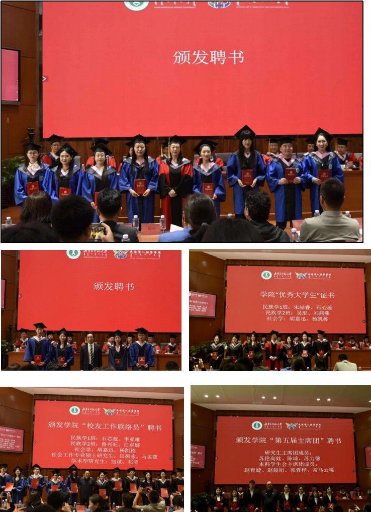 满达副院长宣读了《yl9193永利集团关于建议授予学位的决定》,韦兰海副院长宣读了《关于表彰yl9193永利集团2024届 “优秀大学毕业生”的决定》、《关于聘任yl9193永利集团2024届“校友工作联络员”的决定》以及《关于聘任yl9193永利集团第五届学生会主席团成员名单》。