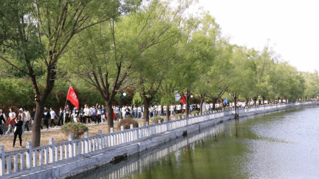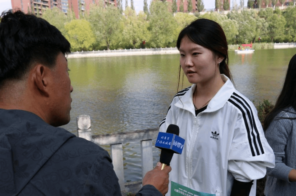 阳光照耀下的乌兰湖波光粼粼,我院师生在湖边集结热身,绕湖而行。我院代表队整齐前进,他们一边舒展筋骨,一边欣赏湖畔的美丽风光。秩序井然的队伍引起内蒙古日报记者的关注并对我院学生进行采访。参赛选手王周璇和学生干部黄长江在接受内蒙古日报采访时,脸上洋溢着自信与喜悦。
