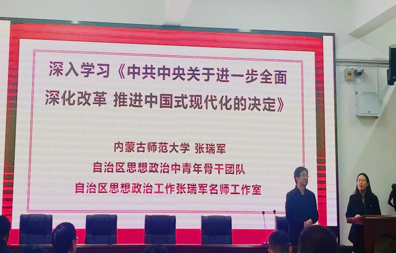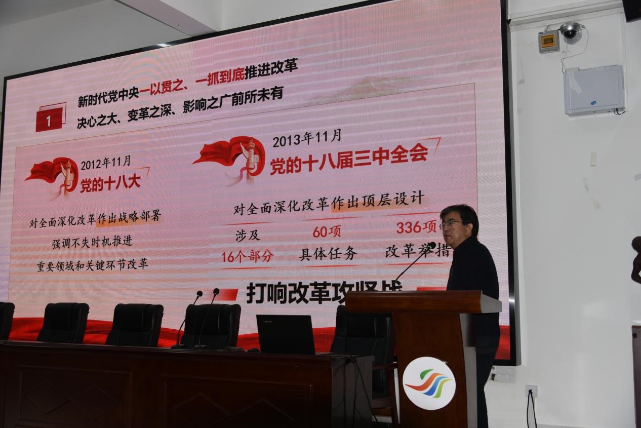 本次党员培训会邀请自治区“五一”劳动奖章获得者、永利官网马克思主义学院党委书记张瑞军主讲。张瑞军教授以“深入学习《中共中央关于进一步全面深化改革 推进中国式现代化的决定》”为主题,深入解读了《决定》精神,从全面深化改革的背景、发展脉络、目标任务等多角度进行了深入分析,详细阐述了“改得咋样”、“为什么改”、“往哪里改”以及“怎么去改”四大问题,为广大党员全面理解《决定》提供了清晰的路径。