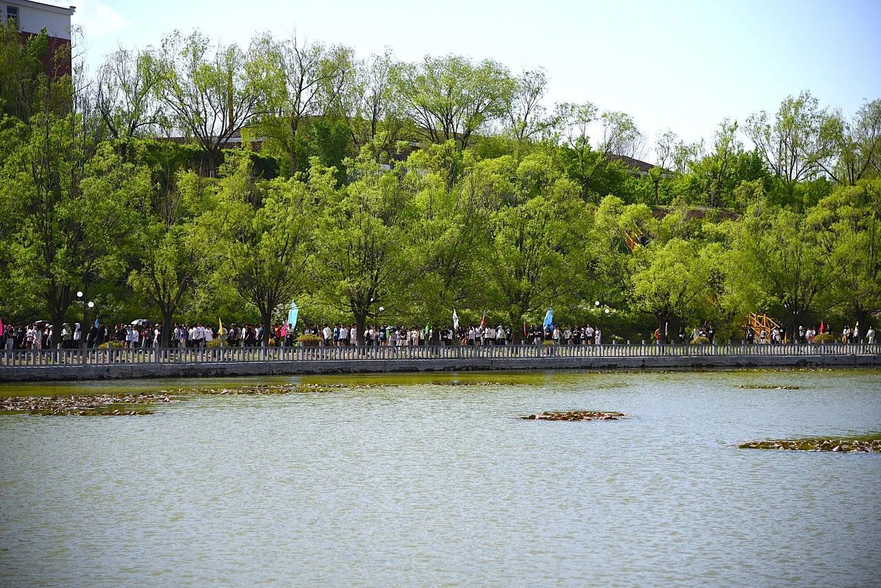 “湖光潋滟映晴空,柳绿含烟浅照融。”五月的湖畔,阳光洒在湖面上,金光闪闪,仿佛无数钻石散落其间,闪烁着耀眼的光芒。岸边的树木随风摇曳,枝叶轻摆,倒映在湖水中,与波光交织成一幅动人的画卷,一片生机盎然。在这样美好的画卷中,全校师生绕湖热身,我院师生精神抖擞,整装待发,笑意盈盈,对比赛信心满满,皆陶醉在春意盎然的“自然氧吧”中。