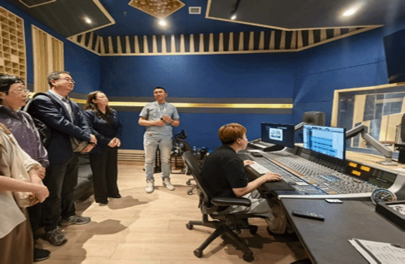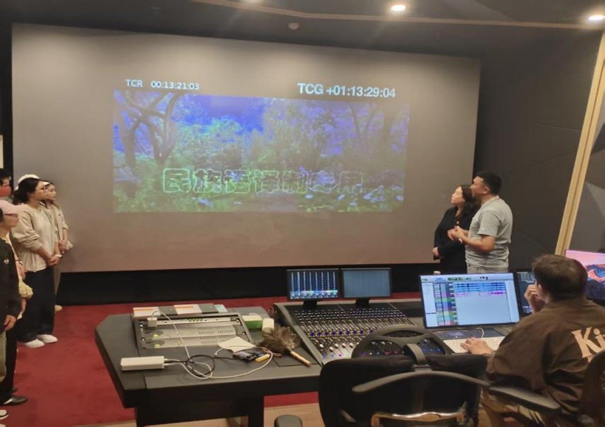 在译制中心工作人员的引导下,师生代表参观了民族语电影译制中心的各个工作环节。从蒙语对白的精准翻译到字幕制作,从混录配音到后期特效处理,每一处细节都展现出民族语电影译制工作者的精湛技艺与敬业精神。在译制车间,内蒙古民族语电影译制中心副总经理布仁门德详细讲解了民族语言译制流程,并表示这不仅是一项语言转换工作,更是一场跨文化的交流与融合。