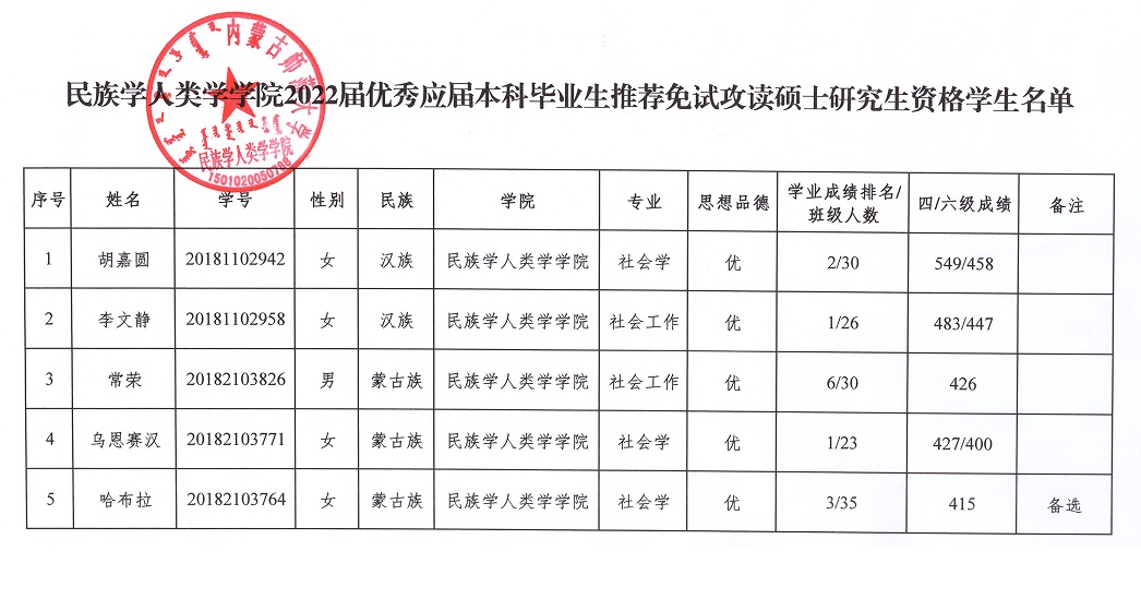 为保障推荐优秀应届本科毕业生免试攻读硕士学位研究生(以下简称推免生)工作的顺利发展,促进本科教学质量的提高,根据《永利官网推荐优秀应届本科毕业生免试攻读硕士学位研究生工作实施办法(修订)》(内师校发【2020】52号)文件精神,结合学院实际,yl9193永利集团成立了2022年优秀应届本科毕业生推荐免试攻读硕士学位研究生工作领导小组,制定了推免工作细则,评选出了获得2022年yl9193永利集团推荐免试攻读硕士研究生资格的学生及预备推荐免试攻读硕士研究生资格学生名单。现予以公示,具体内容请见附件。