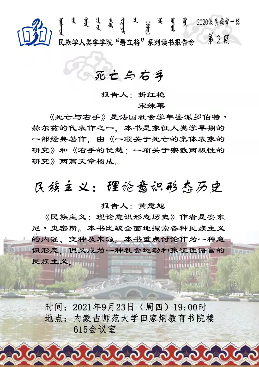 “碧立格”系列读书会民族学本科生1班 第1期预告
