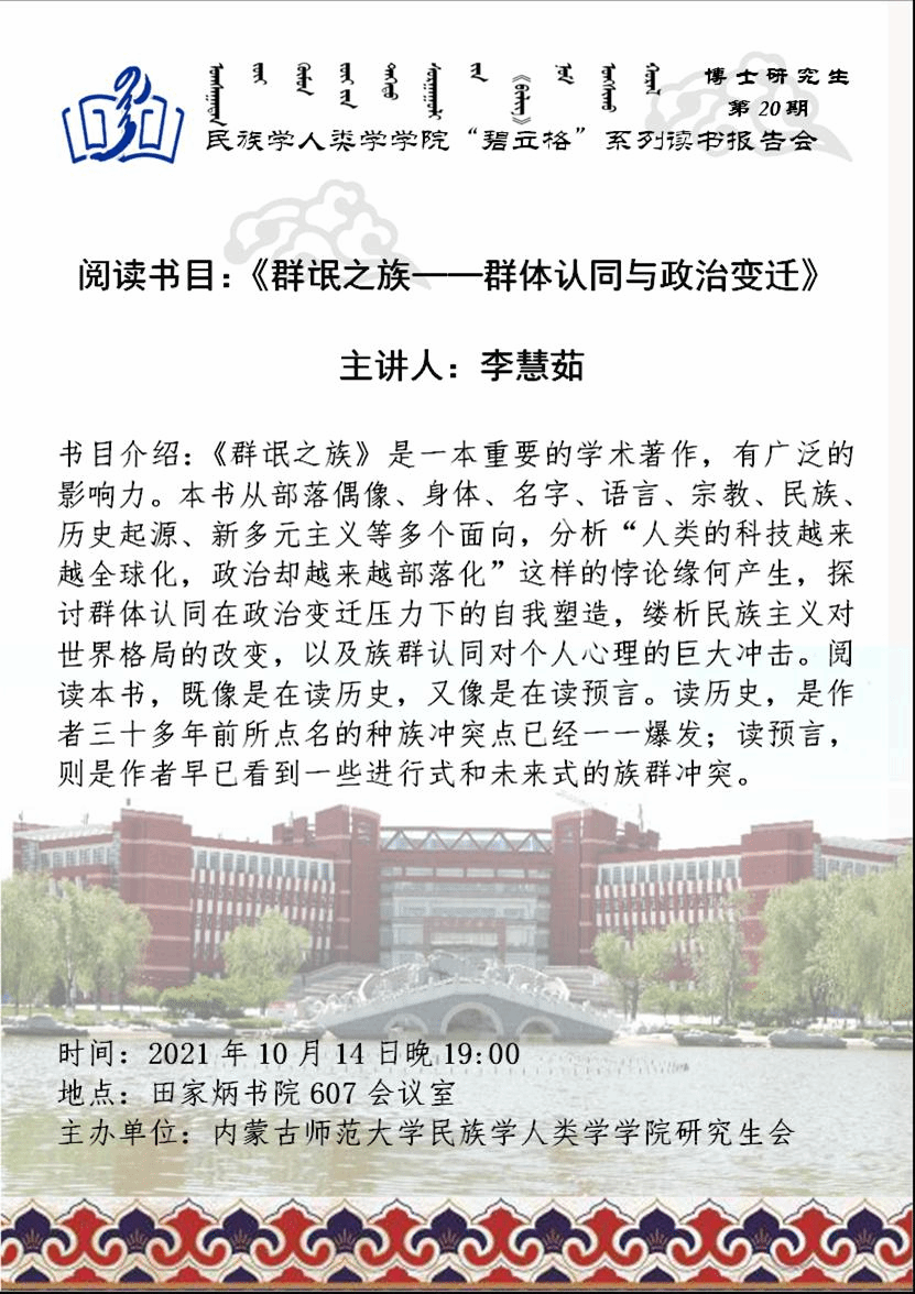 “碧立格”系列读书会博士研究生第20期预告