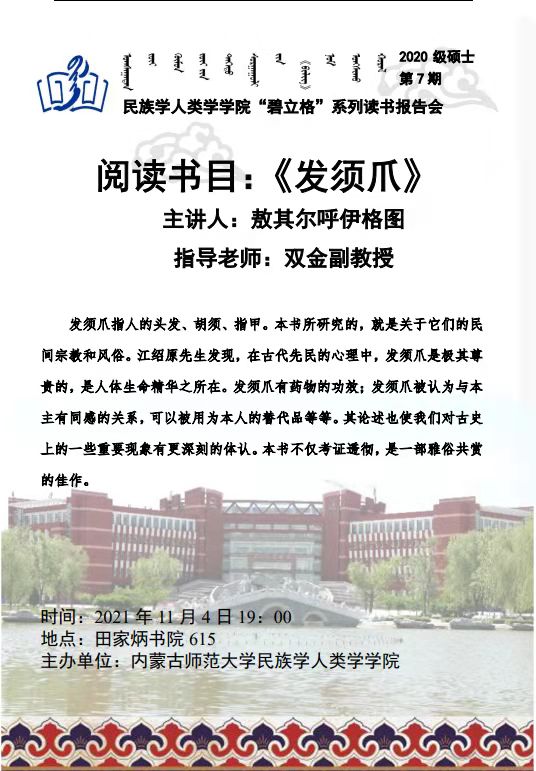 “碧立格”系列读书会2020级硕士研究生第7期预告
