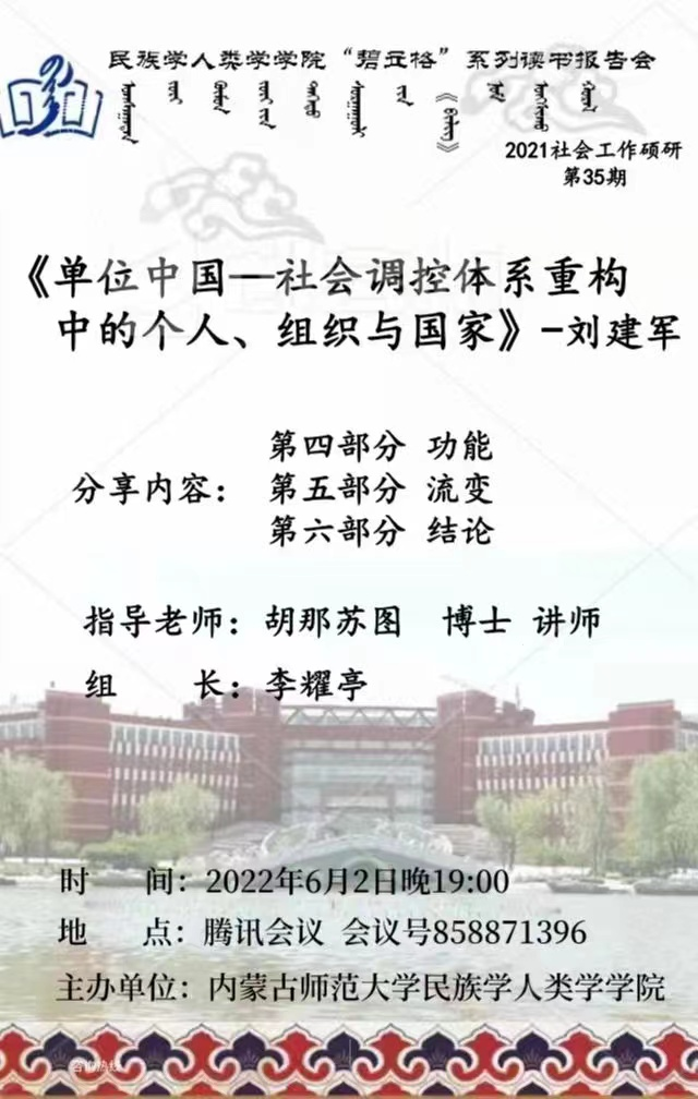yl9193永利集团“碧立格”系列读书报告会预告 2021级社会工作硕士研究生第35期