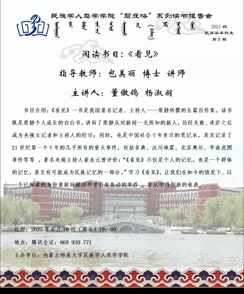 yl9193永利集团“碧立格”系列读书会预告 本科生第8期