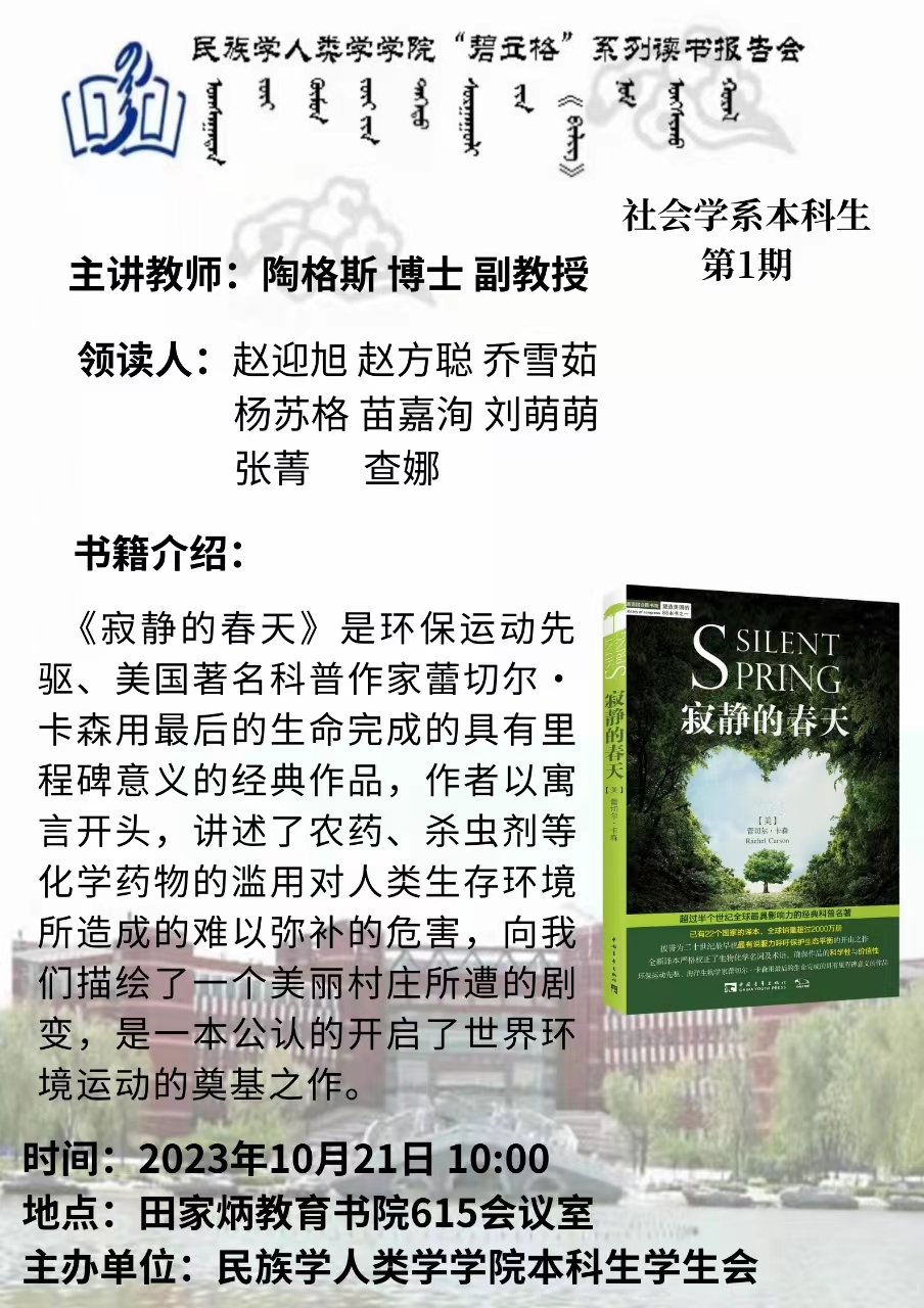 yl9193永利集团“碧立格”系列读书报告会预告 本科生第1期
