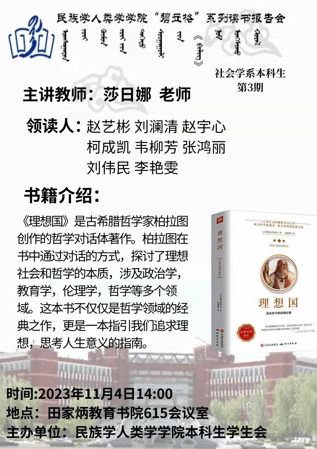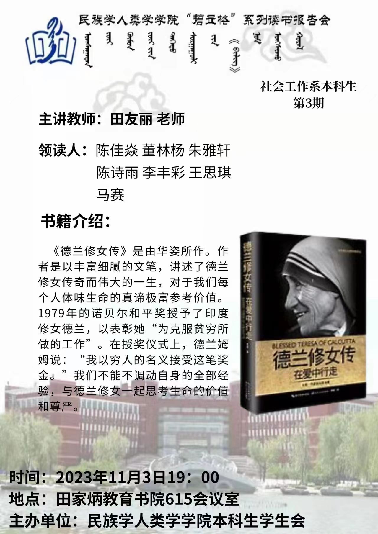 yl9193永利集团“碧立格”系列读书报告会预告 本科生第3期