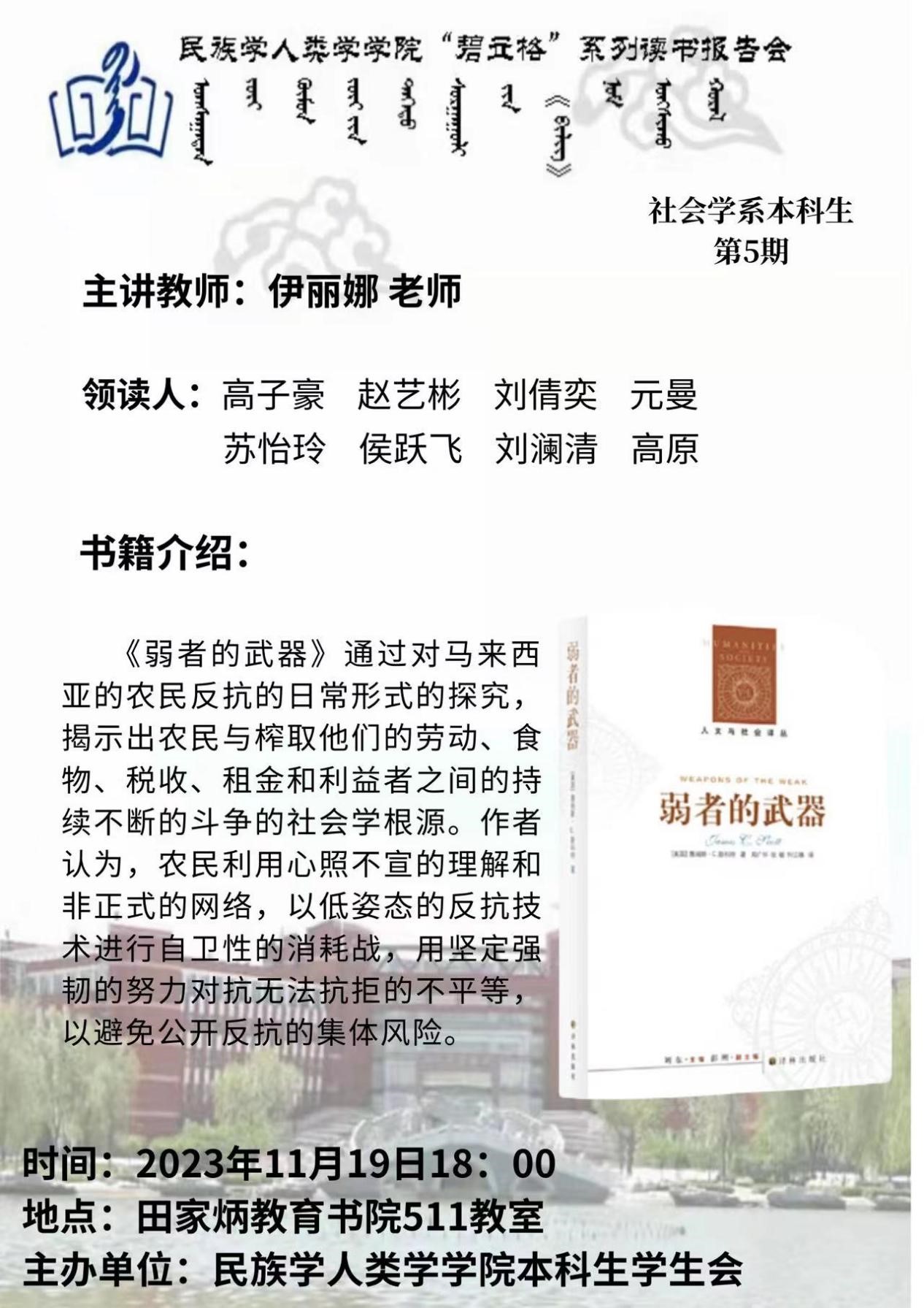 yl9193永利集团“碧立格”系列读书报告会预告 本科生第5期