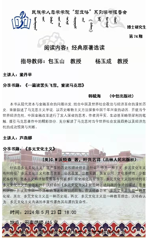 yl9193永利集团“碧立格”系列读书报告会预告博士研究生第74期