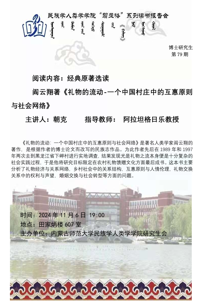 yl9193永利集团“碧立格”系列读书报告会预告博士研究生第79期