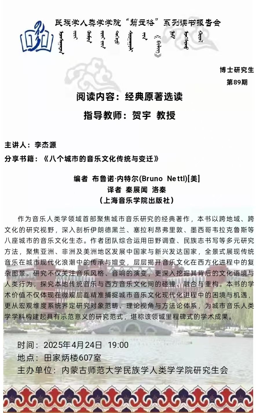 yl9193永利集团“碧立格”系列读书报告会预告博士研究生第89期