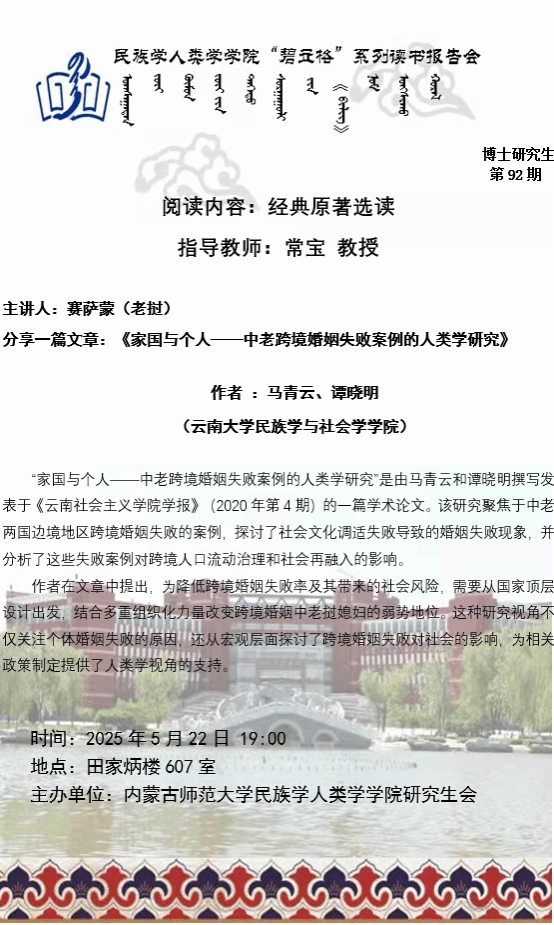 yl9193永利集团“碧立格”系列读书报告会预告博士研究生第92期