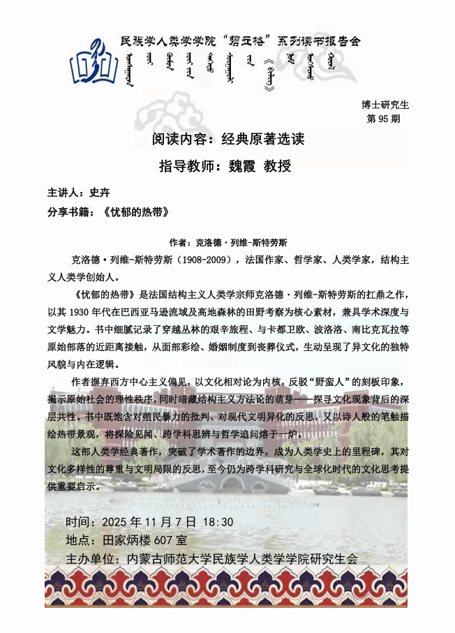yl9193永利集团“碧立格”系列读书报告会预告博士研究生第95期