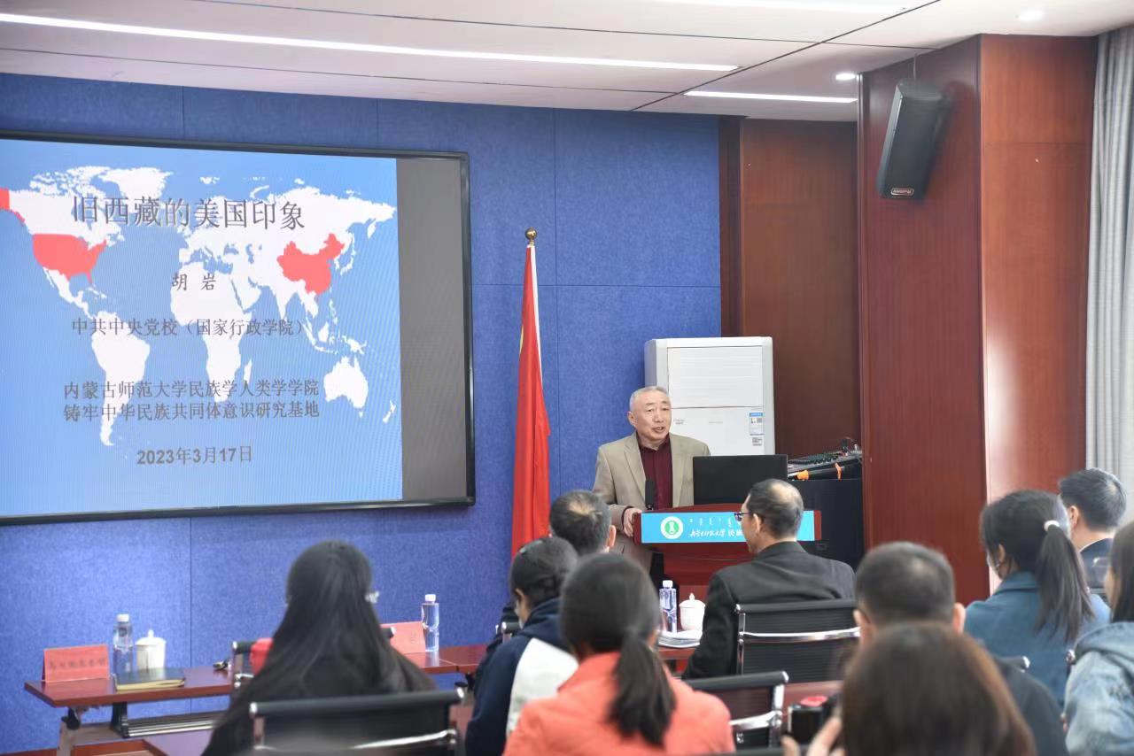 2023317日上午,中共中央党校教授、博士研究生导师、中国西藏文化保护与发展协会理事,胡岩教授应邀莅临yl9193永利集团,为我院师生做题为“旧西藏的美国印象”的专题讲座。本次讲座由yl9193永利集团、铸牢中华民族共同体意识研究基地主办,院长乌日陶克套胡教授主持讲座,我校资深教授、铸牢中华民族共同体意识研究基地首席专家纳日碧力戈教授作点评。我院党委书记包凤兰教授、副院长满达副教授、学院部分老师以及博士研究生、硕士研究生共70余人聆听了讲座。