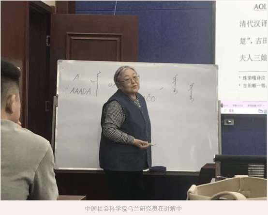 第三场讲座以“关于《元朝秘史》及其解读”为主题展开。此次讲座,乌兰研究员结合自己的研究,就《元朝秘史》的基本情况,如《元朝秘史》的形式、采用这种特殊形式的原因、该书的特点、《元朝秘史》的书名、内容、版本流传等情况做了详细介绍。关于《元朝秘史》的解读,乌兰研究员主要介绍音译正文、旁译两部分,通过列举大量书中的句子,讲解了音译用字一般规则和特殊规则、旁译解读中的词法和句型;第四场讲座以“元代汉语语音及八思巴字”为主题开展,主要讲授了元代汉语语音和八思巴字两部分。她认为学习元代汉语语音旨在了解元代汉语语音的特征,进而掌握元代汉字音译蒙古语的规律,以便构拟和复原蒙古语读音。学习八思巴字亦旨在学习元代的汉语音韵,通过八思巴字的记音,了解到元代汉语的实际发音情况。