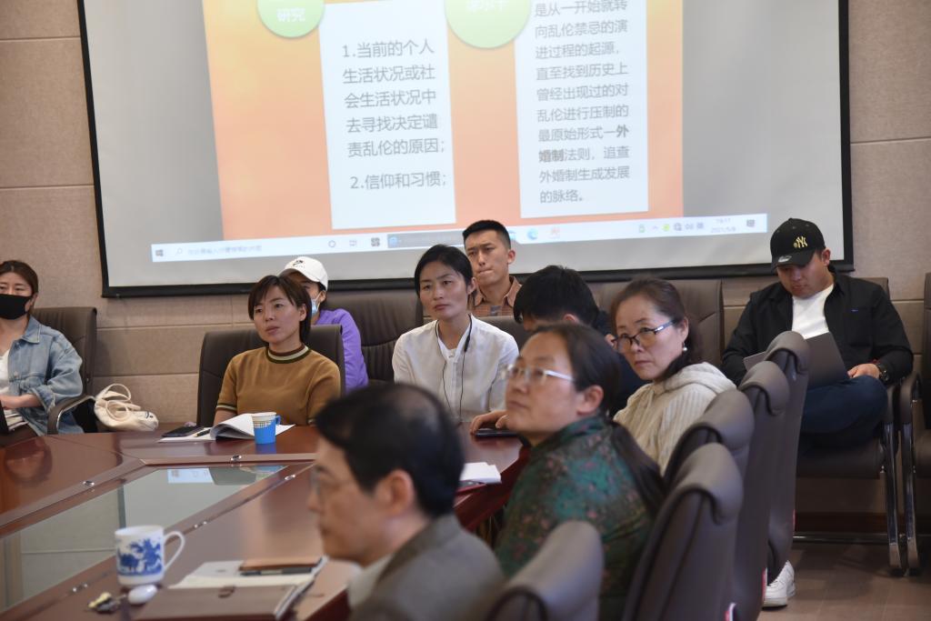 yl9193永利集团博士研究生第十六期“碧立格”系列读书报告会于2021年5月8日在田家炳书院607会议室举办。本期阅读书目为《乱伦禁忌及其起源》,报告人是我院2020级博士研究生于会新,本期的指导教师、主持人为我院的博士研究生导师 赵树冈 教授。参会嘉宾:阿荣、图雅、朱苏道、高娃、范尊、麦拉苏、萨出日拉图、云中。共读者为我院博士研究生和硕士研究生、本科生共计40余人。
