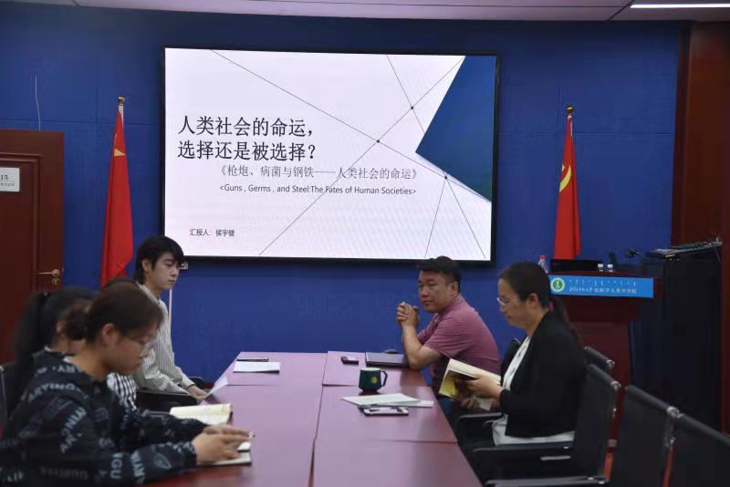 本次读书报告会是由2020级民族学二班的侯宇健同学分享贾雷德·戴蒙德的著作《枪炮、细菌与钢铁:人类社会的命运》。他将本次汇报分成了作者介绍与学术背景、内容梗概主题探索与自我反思三部分。侯宇健同学分享了自己读完本书后一些思考,他认为,没有任何一个理论或框架可以解释所有的历史,理解历史必须学习各种学科的各种理论与框架。