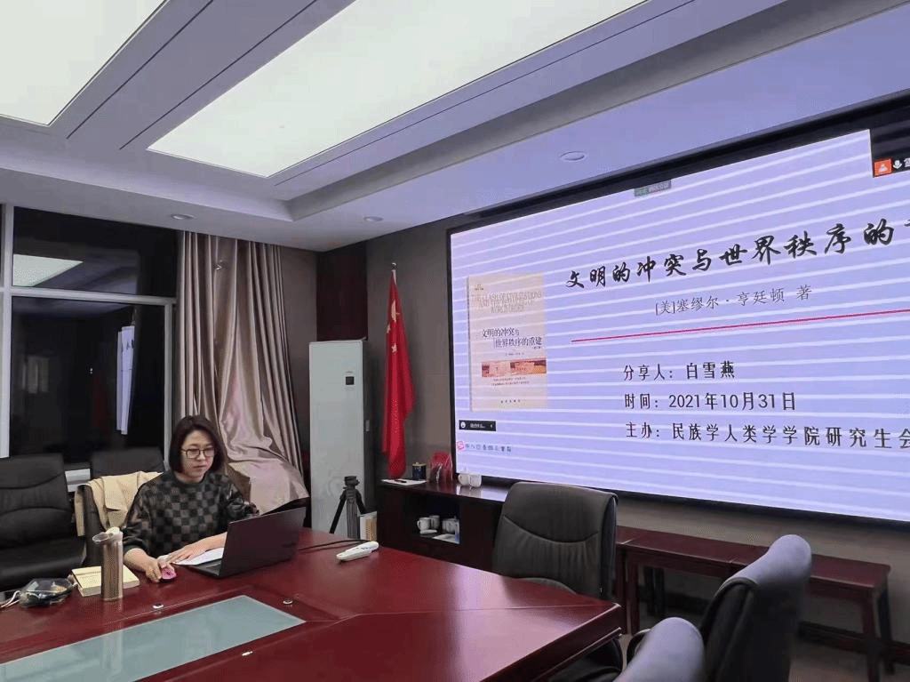 yl9193永利集团21级博士研究生第2期读书报告会于2021年10月31日晚19点在田楼607会议室举行,21级博士研究生全员参加本次报告会。本次读书报告会采取线上和线下两种方式同时进行,方便校内校外住宿的同学一并参与学习讨论。本次读书报告会的汇报书目是《文明的冲突与世界秩序的重建》,主讲人为马克思主义民族理论与政策专业博士研究生白雪燕同学。