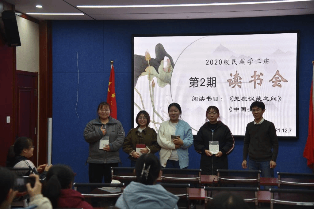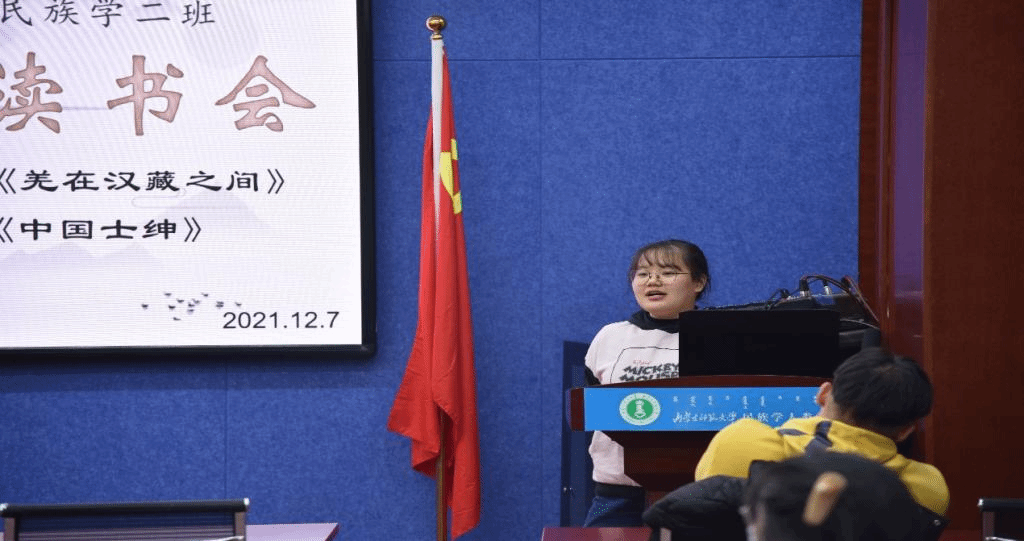 2021年12月7日19:00时,yl9193永利集团2020级民族学2班全体同学在田楼615会议室开展第2期“碧立格”读书报告会,班主任那日苏老师莅临现场,张楠同学主持读书会。主讲内容是,兰晶同学分享费孝通的《中国士绅》,刘燕燕同学分享王明珂的《羌在汉藏之间》。
