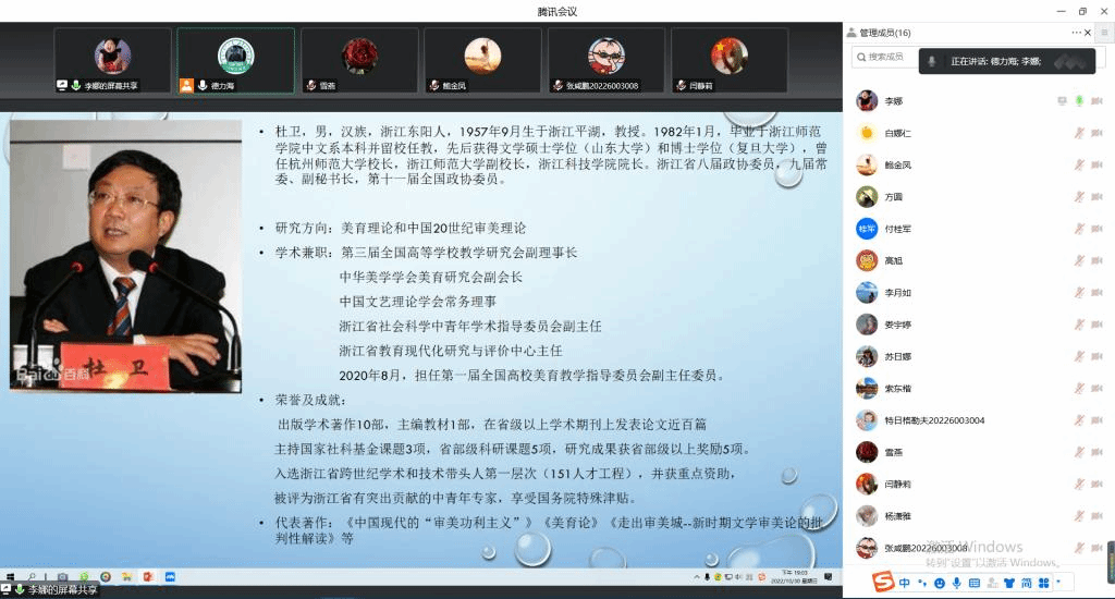 李娜同学汇报的论文为杜卫《今天,我们为什么需要艺术——关于经典艺术人文价值的阐释》,发表于《中国社会科学》2022年第5期。李娜同学详细梳理了经典艺术对促进人的全面发展、提高人的生活质量和人生境界的人文价值;解析了从王国维开始,中国美学家创造的一系列美学话语,并总结出人类文明发展史就是人类艺术的发展史;最后明确艺术特别是经典艺术,对于完整、圆满、完美的人生具有不可忽略的重要意义。以本篇论文为基础,拓展了不同国家对于艺术的不同理解和欣赏,令在场的同学耳目一新。