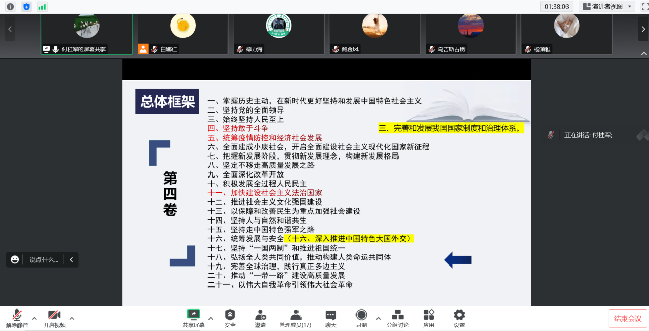 2022年11月6日19:00,yl9193永利集团2021级、2022级博士研究生通过“腾讯会议”举行了第47期读书报告会。本次读书报告会中白娜仁同学和付桂军同学分别分享了《像人类学家一样思考》和《习近平谈治国理政》第四卷两本书。