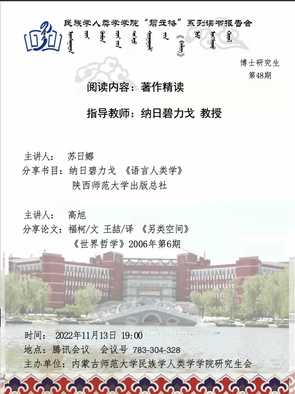 yl9193永利集团“碧立格”系列读书报告会预告 博士研究生第48期