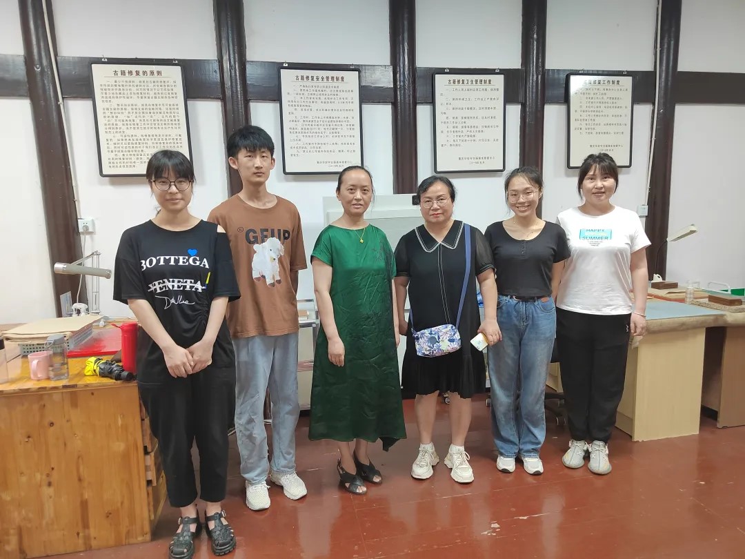 宗教学专业师生参观古籍善本修复中心工作室和博物馆后,探讨了古籍修复的工作流程。修复中心的王老师对同学们进行了详细的指导,初步展示两种古籍修复流程,并一对一指导各位同学进行修复练习。