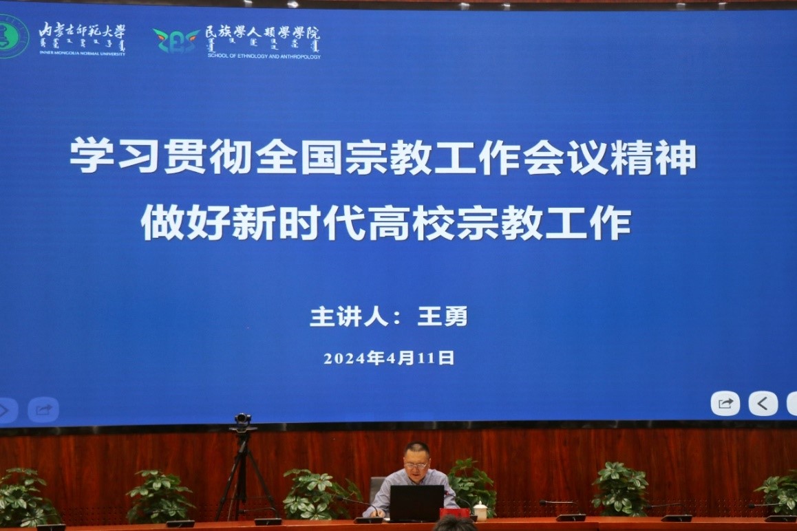 为深入学习贯彻习近平总书记关于宗教工作的重要讲话精神,加强师生对党的宗教政策、形势的了解和认识,4 月 11 日下午,我院邀请王勇同志在赛罕校区信息楼报告厅作了题为《学习贯彻全国宗教工作会议精神,做好新时代高校宗教工作》的专题讲座。学校统战部部长吴爱华、党政办主任沙金、我院党委书记包凤兰、学校党政办支部的全体老师及我院部分师生约200人参加讲座。讲座由副院长满达主持。